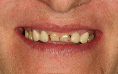 POTEM - spredaj porcelanske krone, zadaj fiksna protetika na implantatih